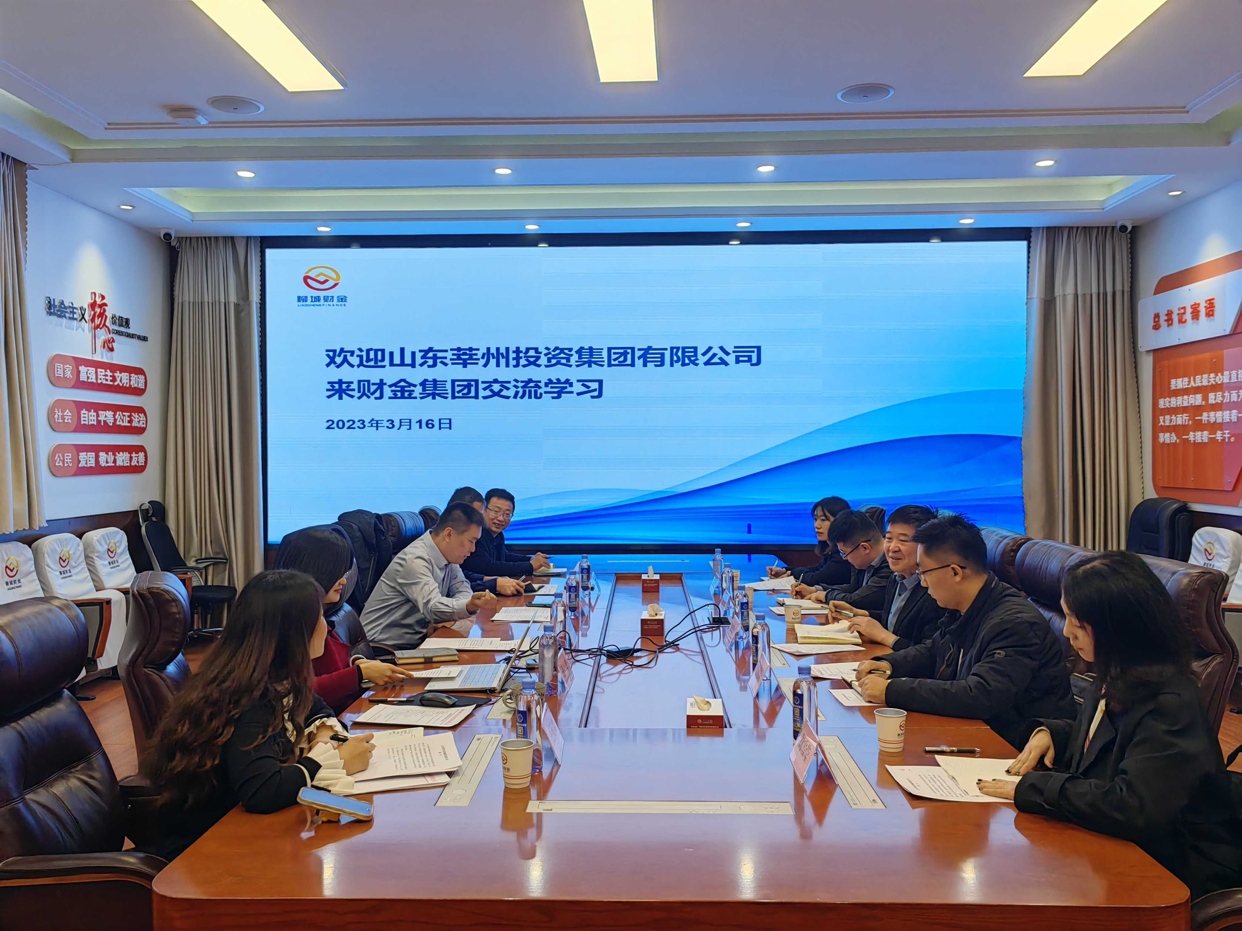 3月16日,山東莘州投資集團有限公司黨委副書記、總經(jīng)理陳現(xiàn)啟帶隊赴聊城財金集團開展交流學習活動。財金集團副總經(jīng)理趙青賓、總經(jīng)理助理孫競及相關人員參加座談。